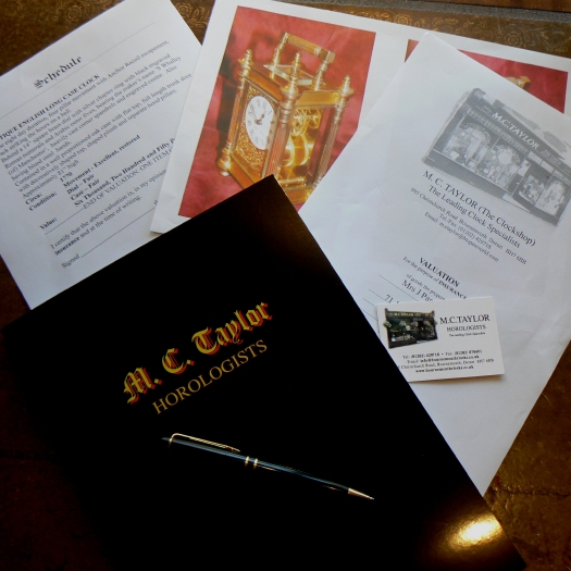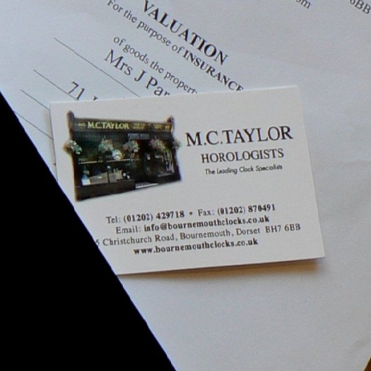 Clock, timepiece or barometer valuations can be obtained from M. C. Taylor. There are two different ways of obtaining your valuation either CLICK HERE for our unique 'e-val' online or bring your item to our shop.