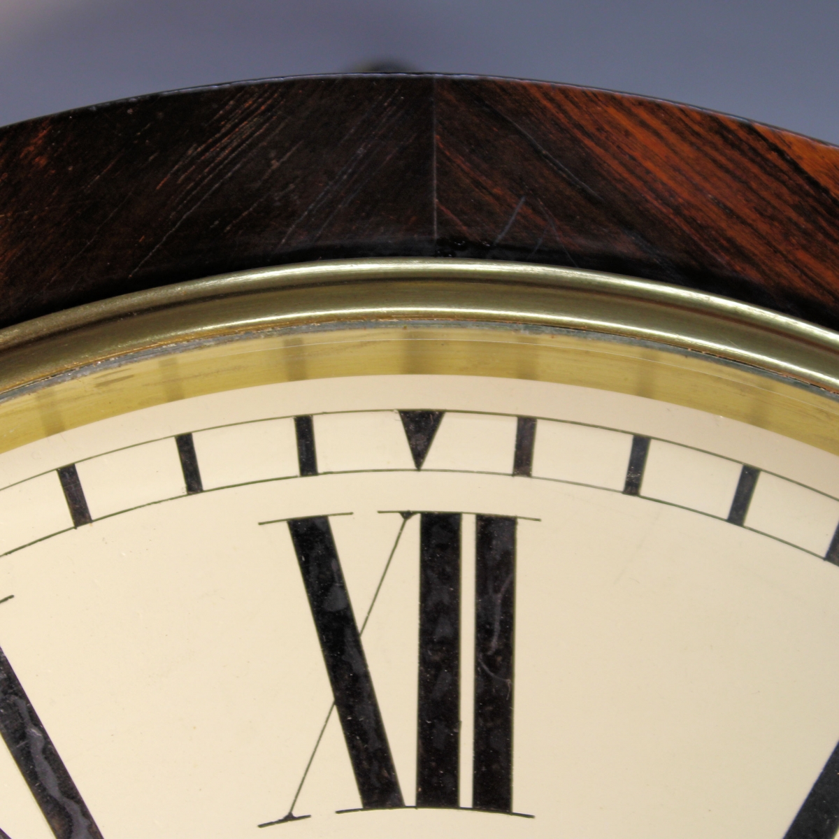 A Great Western Railway, Drop-dial fusee wall clock. Mahogany case and numbered 3607. Circa 1870.